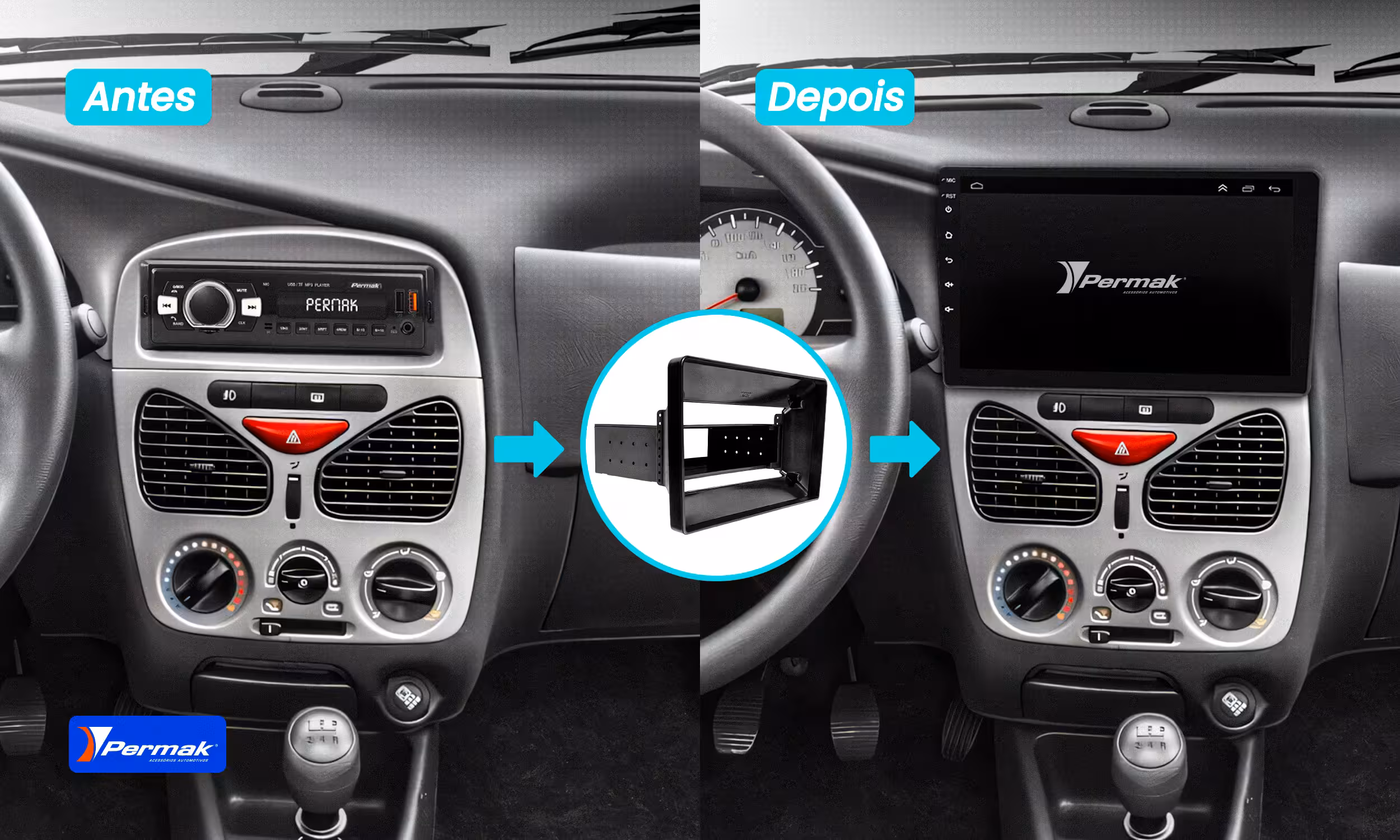 A Permak Acessórios desenvolve uma linha completa de molduras adaptadoras voltadas para quem busca modernizar o painel do veículo com acabamento de fábrica, encaixe preciso e resistência. Logo abaixo descubra nossas principais molduras adaptadoras e escolha a que mais combina com você
